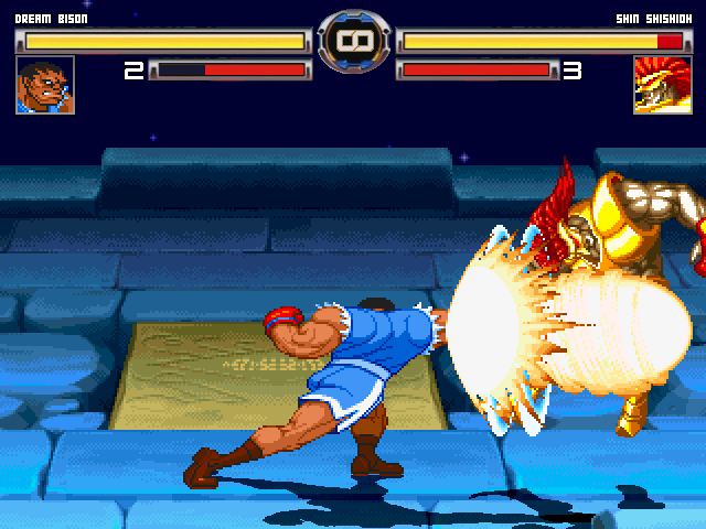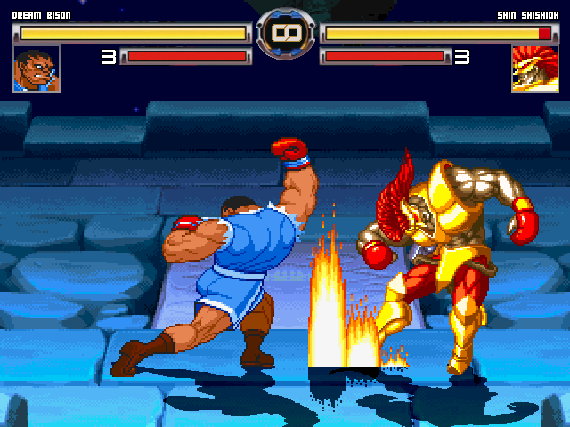 《ドリーム・バイソン》 H”様のストゼロ3バイソンの改造キャラです。 往年のボクサーたちから技をいただいてきました。 《更新履歴》 2022年7月1日バージョンです。 喰らい判定が抜けているバグを修正しました。 《Download》 【Cns File】 ★New! 《スクリーンショット》 戻る