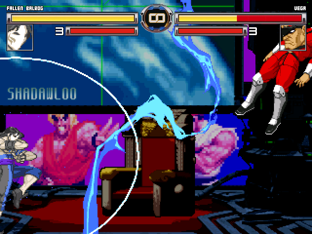 《フォールン・バルログ》 MMR様のストゼロ3バルログの改造キャラです。 ガンスパイクでの挙動をもとに必殺技を作成し、某漫画から超必殺技をいただいてきました。 《更新履歴》 2014年11月29日バージョンです。 受け身の処理の修正です。 《Download》 【Cns File】 ★New! 【Snd File】 《スクリーンショット》 戻る