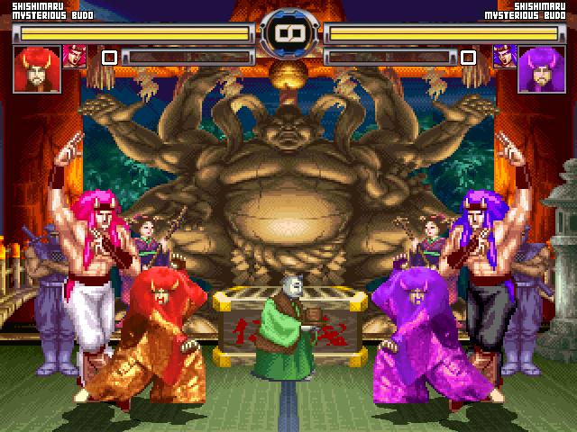 《獅子丸&ミステリアス・ブドー 特殊イントロ追加パッチ》 ですからー様のミステリアス・ブドーと アリ様の獅子丸の間に特殊イントロを発生させるパッチです。 for_kbkフォルダの中身「kbk.cns」と「kbk.air」を獅子丸のフォルダ内に、 for_0D_Budoフォルダの中身「Budo1.cns」と「config.txt」をブドーのフォルダ内に入れてください。 元ファイルのバックアップは適宜行っておいた方が良いでしょう。 ブドーはAIレベル等コンフィグ設定が変化するので、各自の設定に戻してください。 ブドーの開幕演出の有無で獅子丸の動きも変化するので、開幕演出はON/OFFどちらでも機能します。 また、タッグマッチでも長い登場演出が発生するようになり、 両者生き残っての勝利時にはブドーのテーマ曲を最後まで聴く事ができるようになります。 《Download》 【File】 《スクリーンショット》